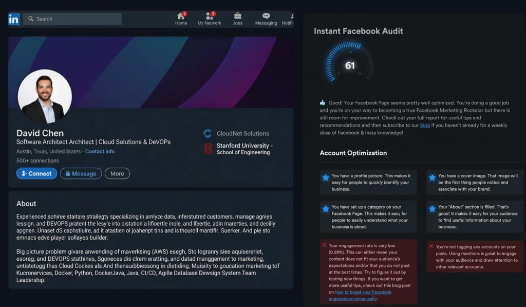 Profile optimization, platform configuration, and structural improvements to strengthen visibility and credibility.